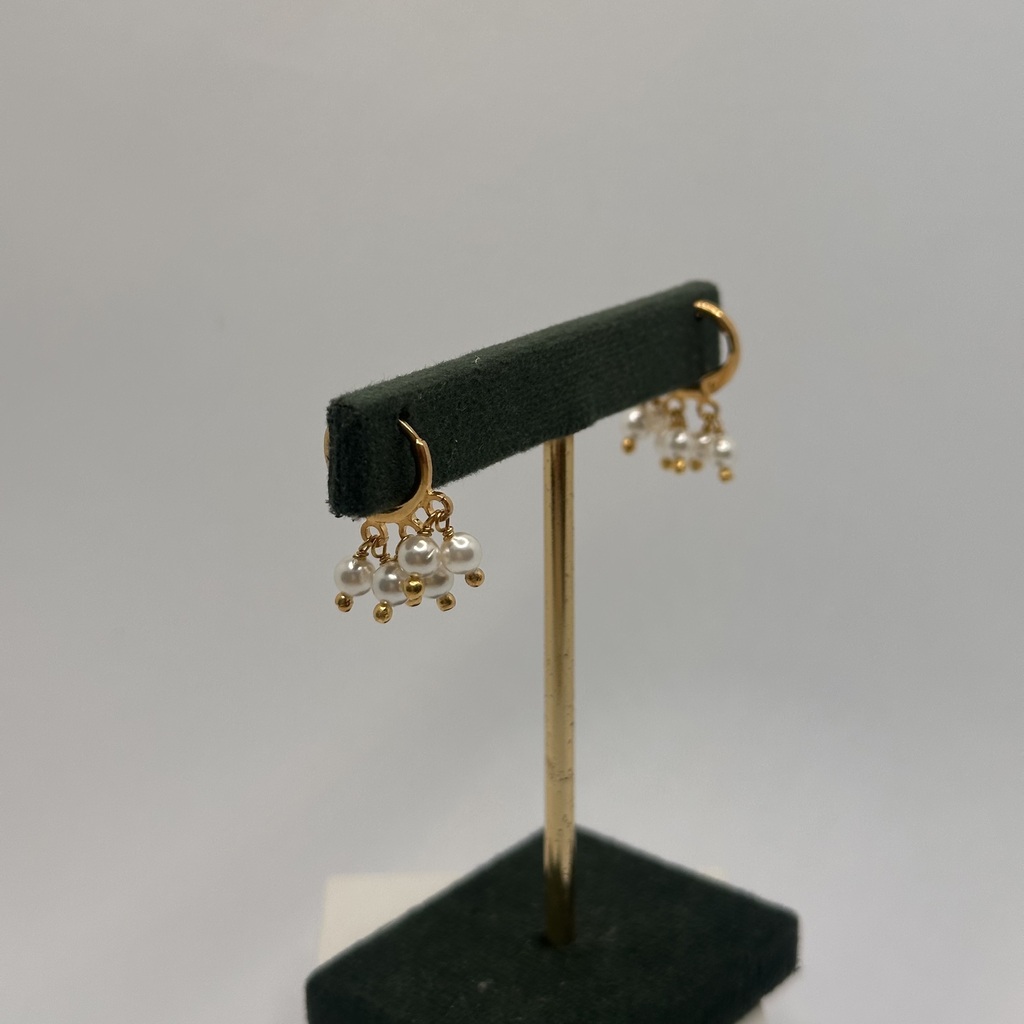 Brinco Argola Cacho Cristal com 3 Pedras Naturais Pérola Shell